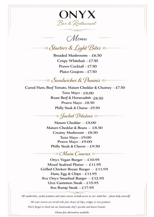You will find our latest menu below, but please also check our blackboards for pies, pasta, chef's daily specials and desserts. Remember we're open daily from 11am until 11pm, serving food from midday.
